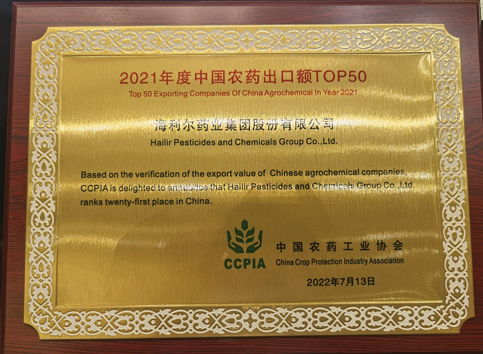 过去的一年,全球疫情蔓延、国际局势动荡,不确定性成为最大的确定性。在此背景下,农药行业积极参与构建以国内大循环为主体、国内国际双循环相互促进的新发展格局,通过强化对外合作,更加紧密的与世界经济联系互动,整体形势稳中向好。2021年,yl7703永利集团药业集团在国际市场占有份额位居前列,荣登中国农药出口额TOP50第21名。