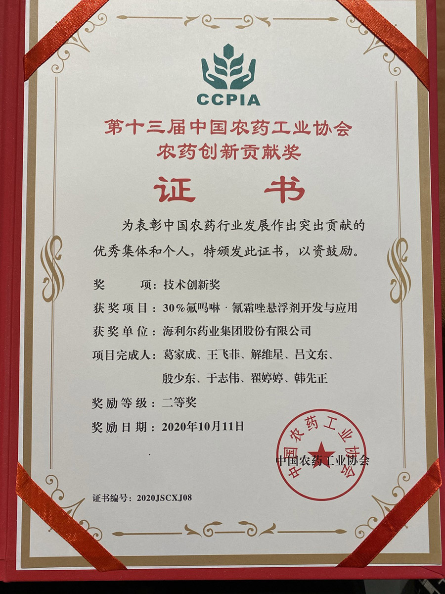 10月11日,第十三届中国农药工业协会农药创新贡献奖名单揭晓,yl7703永利集团荣获技术创新奖二等奖。