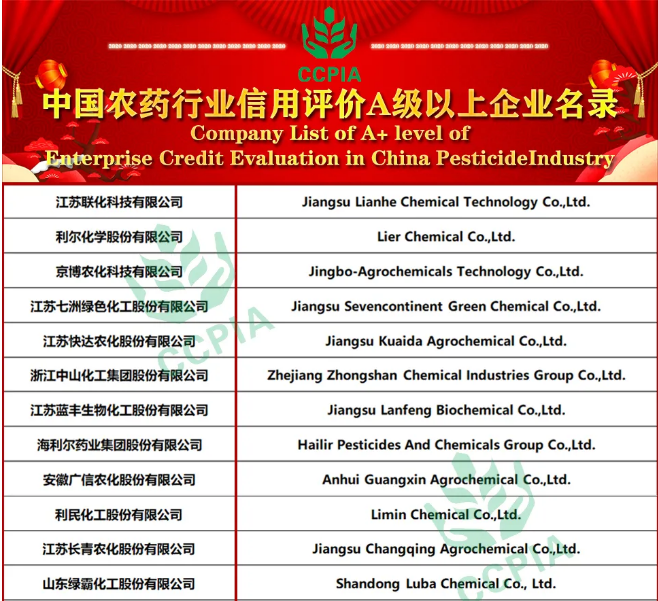 10月11日,中国农药工业协会在上海召开第二十届全国农药交流会,会议期间中国农药工业协会向全社会隆重发布了2020年中国农药行业企业信用评价等级的名单,yl7703永利集团入选中国农药行业信用评价A级以上企业名录。