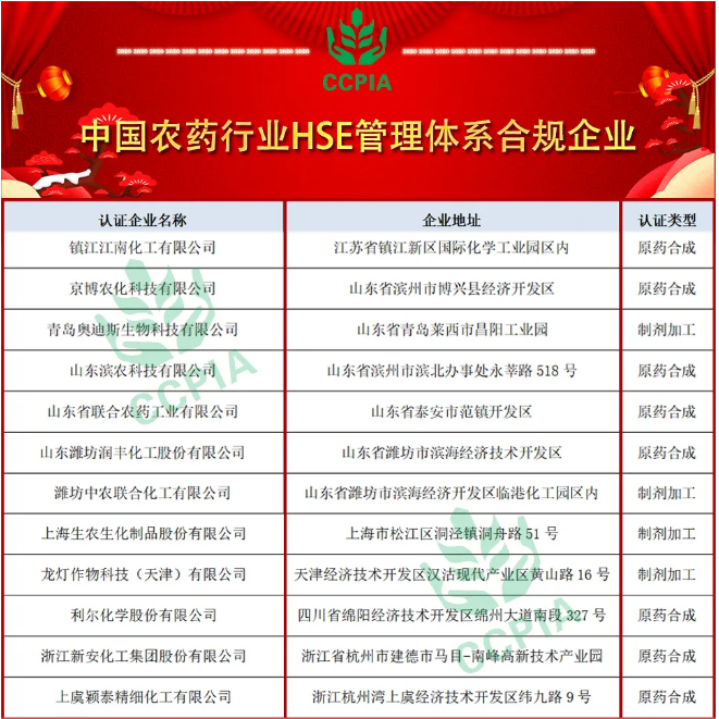 10月11日,“中国农药行业HSE管理体系合规企业”名单发布,yl7703永利集团药业集团旗下子公司青岛奥迪斯生物科技有限公司榜上有名。