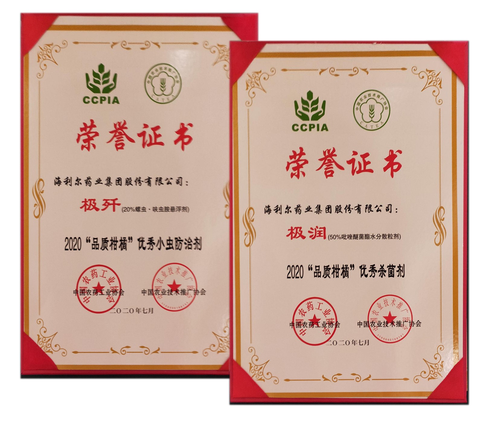 由中国农药工业协会联合中国农业技术推广协会共同开展的2020“品质柑橘”优质农资及服务系列评选获奖名单在全国农业技术推广服务中心、中国农药工业协会主办的“第二十七届系列作物解决方案会议之柑橘论坛”上颁布。yl7703永利集团药业集团极润®、极歼®荣获中国农药工业协会颁发的2020 “品质柑橘”优秀杀菌剂奖和2020 “品质柑橘”优秀小虫防治剂奖!