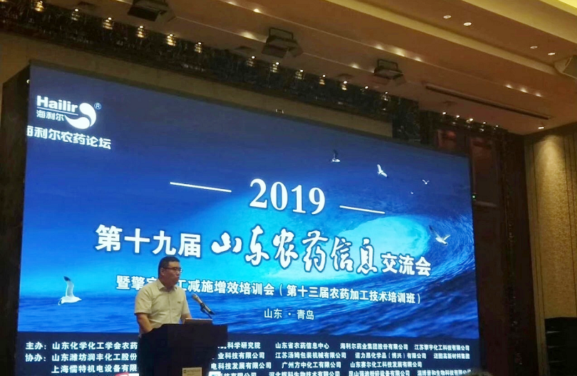 为解读农药行业形势,提高行业技术水平,推动行业可持续发展,8月6日,2019yl7703永利集团农药论坛暨第十九届山东省农药信息交流会在青岛召开。中国农药工业协会李钟华副会长、中国农药发展与应用协会花荣军秘书长、山东省农业农村厅农药管理处杨武杰处长等领导莅临会议。集团董事长葛尧伦、总裁葛家成受邀出席开幕式。会议围绕“新技术引领行业提档升级”主题,谋发展,话创新,吸引了来自山东各地的业界代表500多人。
