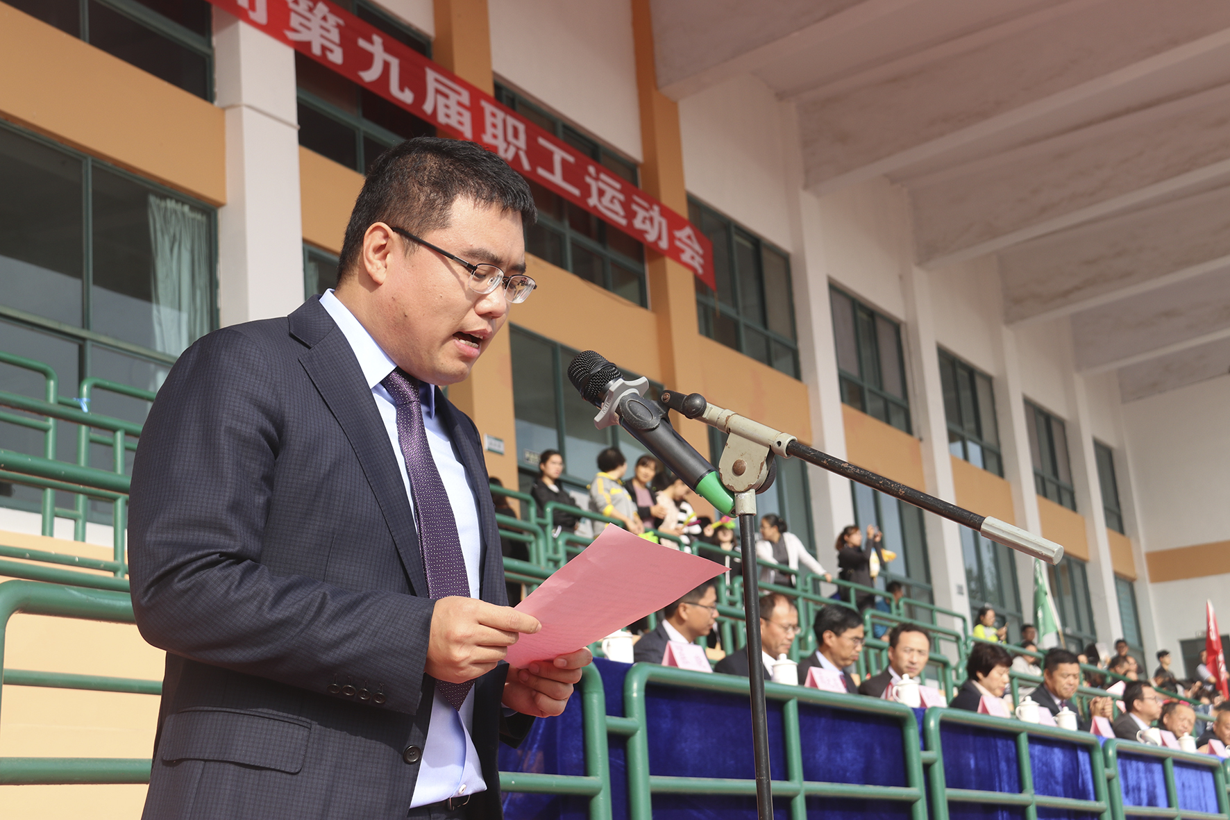 上午9时,伴着着激昂的乐曲声,八支代表队依次进场。升国旗、奏国歌、升yl7703永利集团旗帜、进行yl7703永利集团事业守护者宣言......在热烈的气氛中,总裁葛家成致开幕词,董事长葛尧伦宣布运动会开幕。