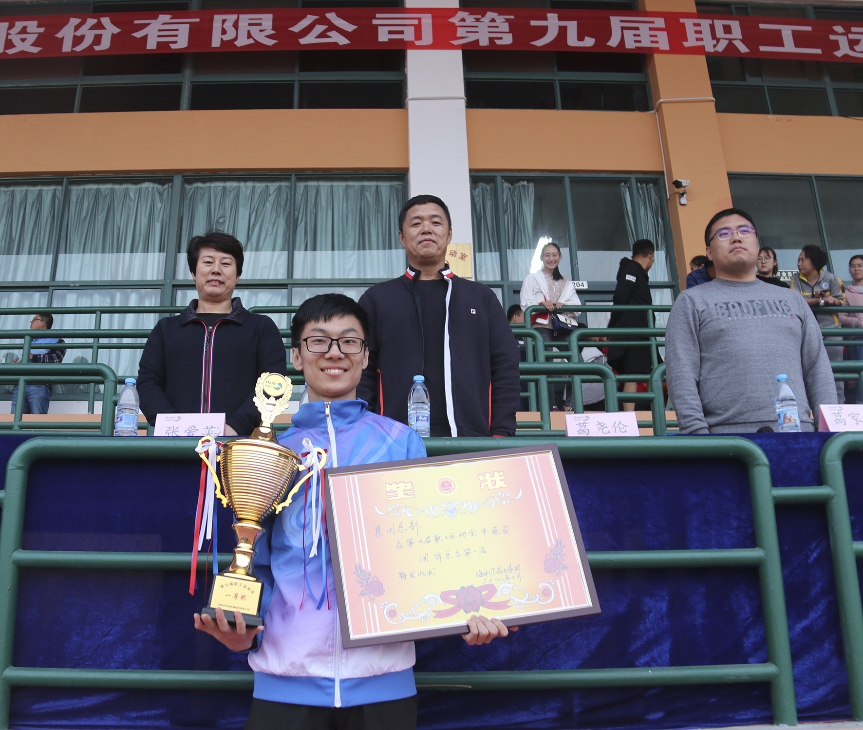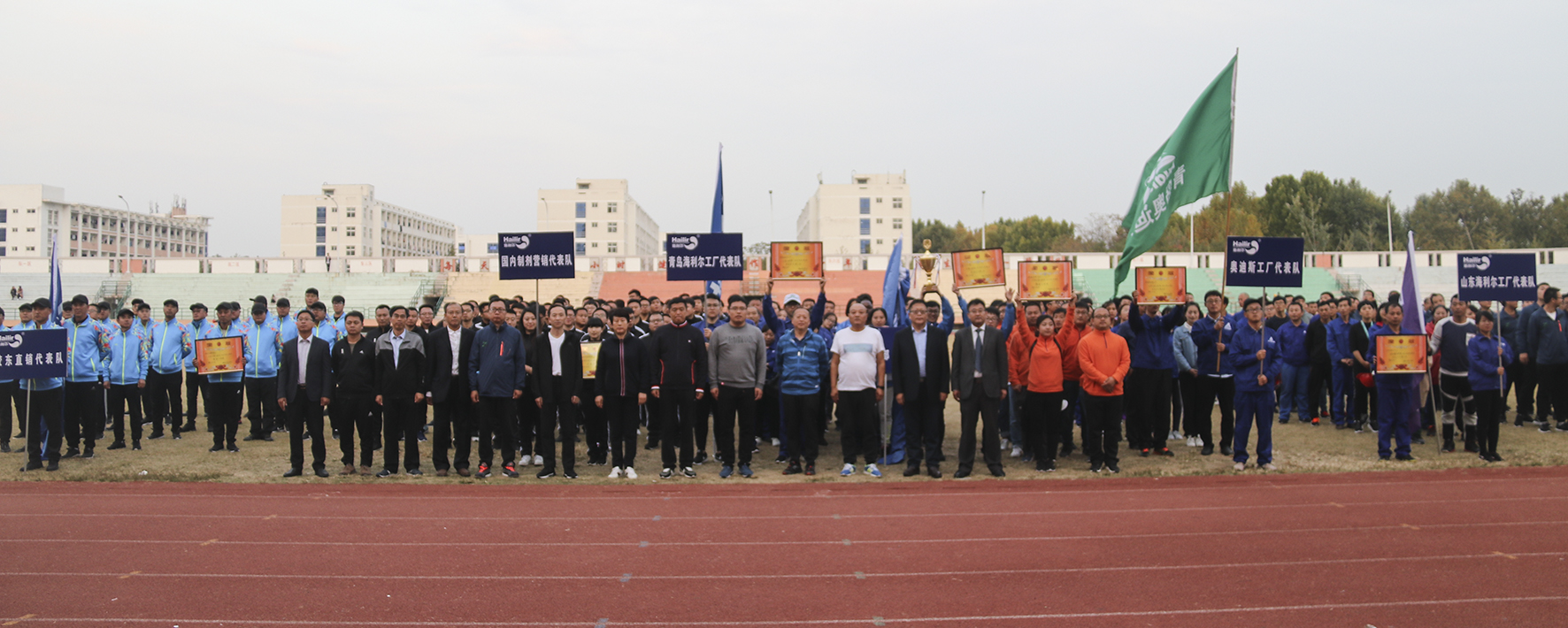 10月20日,yl7703永利集团集团第九届职工运动会在青岛农业大学体育场隆重举行,来自集团总部、各工厂、各公司的八支代表队参加了此次运动会。集团人力资源总监张晓主持开幕式,集团董事长葛尧伦、董事张爱英、总裁葛家成等高管在主席台就坐。