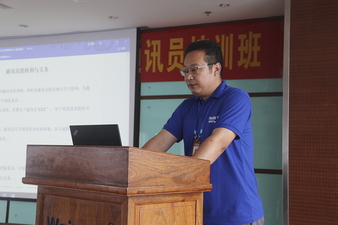 随后,企业文化办公室主任高金远对集团企业文化、重要思想、指导方针、新闻写作等进行培训,对《通讯员及投稿管理办法》、《品牌管理办法》、《内外宣管理办法》以及集团内外宣平台稿件评选标准及征稿要求进行了宣贯。徐菁海对摄影摄像专题进行了讲解。培训中,高金远将新闻理论知识用幽默诙谐的语言表达出来,不时与学员进行互动,整个培训过程轻松愉快。