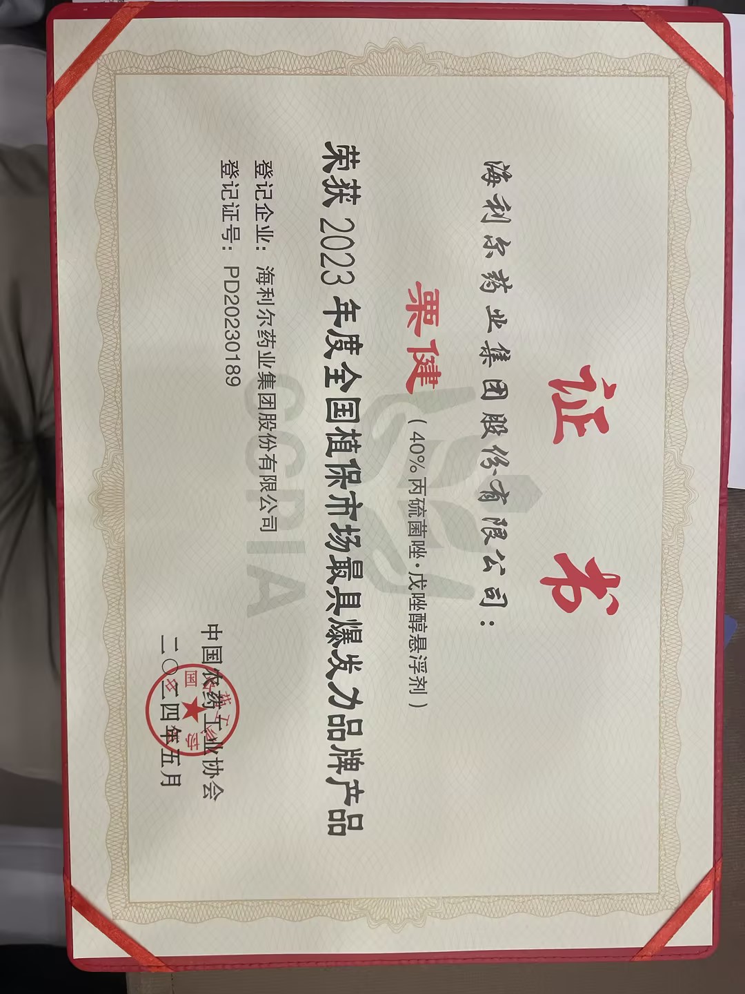 5月21日,会议发布了2024全国农药行业销售TOP100名单、2023年度全国植保市场畅销品牌产品,yl7703永利集团药业集团集团荣获2024全国农药行业销售百强榜第14名,集团产品“栗健”荣获2023年度全国植保市场最具爆发力品牌产品。