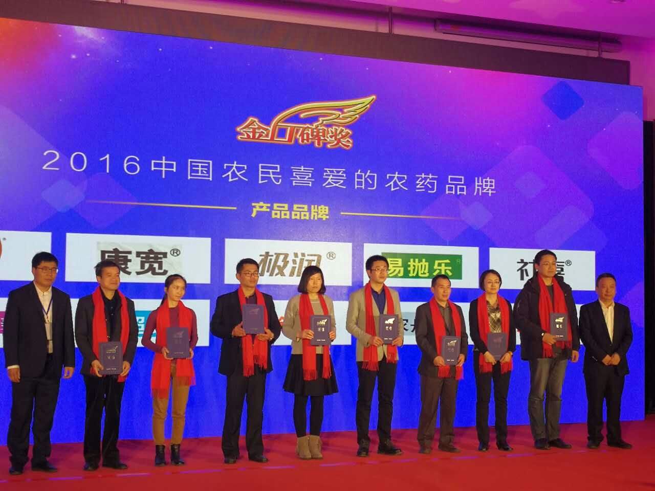 2月24日,2016年中国农民最喜爱的农药品牌颁奖盛典在北京举行,会议揭晓了2016年度中国农民最喜爱的农药企业品牌和农药产品品牌。集团公司连续第六次获得“中国农民喜爱的农药企业品牌”,战略大品“极润”、“社喜”分别获得2016年度中国农民喜爱的农药产品品牌”第三名和第五名!