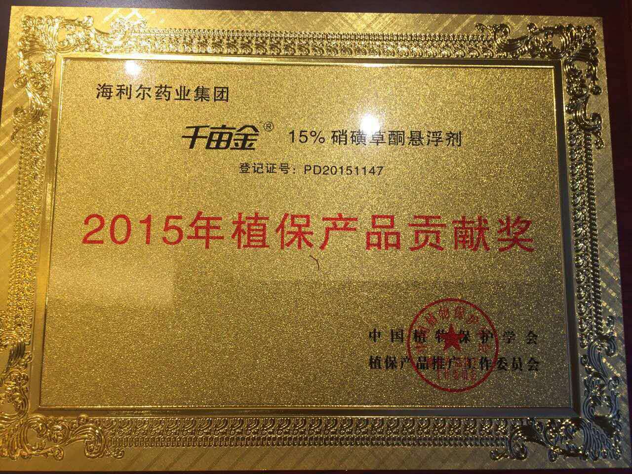 “嘧甲”、“千亩金”、“白加绣”三产品荣获“2015年植保产品贡献奖”是中国植物保护学会对三产品的高度认可。yl7703永利集团药业集团将加大研发力度,继续致力于为种植者提供更加安全、环保、低毒的农药产品,助力广大种植者丰产增收,为国家实现在2020年农药用量零增长目标贡献力量。