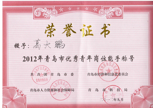 近日,共青团青岛市委、青岛市经济和信息化委、青岛市人力资源和社会保障局、青岛市科技局等四部门联合下发文件,命名表彰2012年青岛市杰出(优秀)青年岗位能手,yl7703永利集团药业集团副总裁兼国际发展部部长葛大鹏被评为青岛市优秀青年岗位能手。