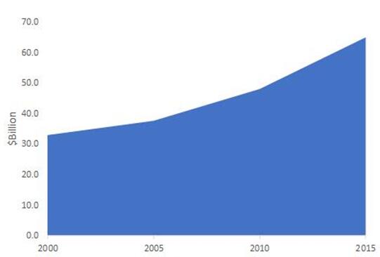2. 农化产品的销售额逐年增长(单位:十亿美元 来源:BIS研究所分析)