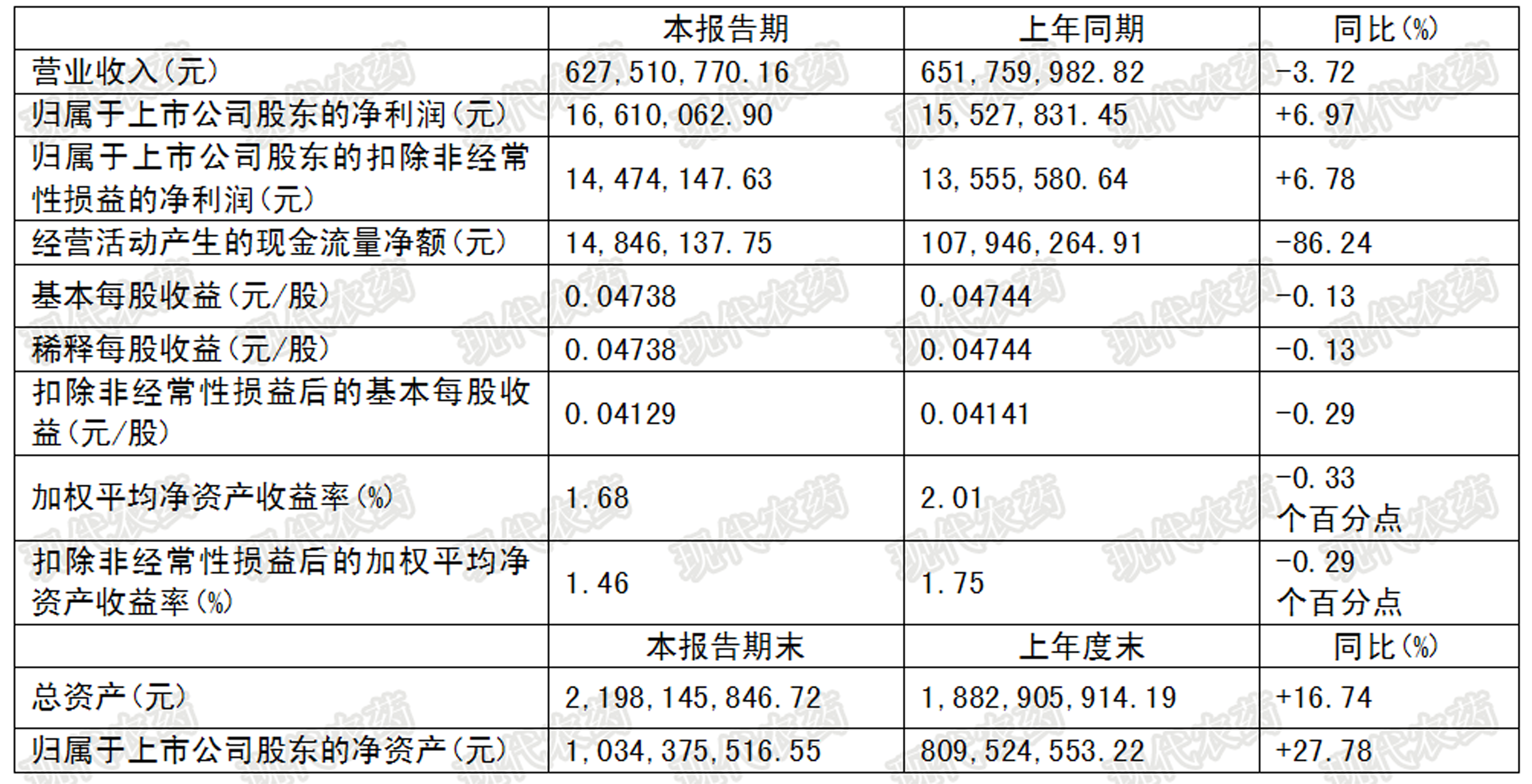 表3 yl7703永利集团上半年主要财务数据