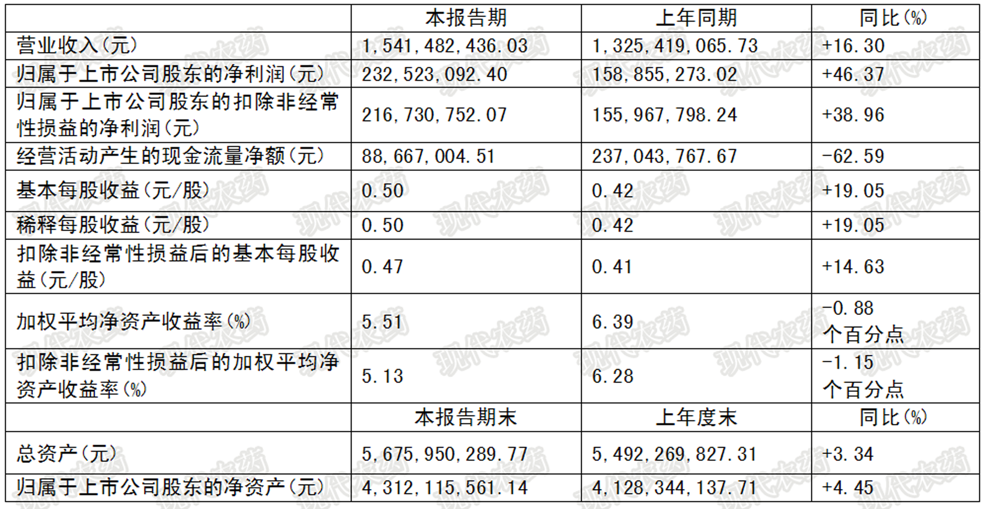 报告期内,公司实现合并营业收入124,938.51万元,同比增长50.45%;实现归属于上市公司股东的净利润24,048.72万元,同比增长62.44%。在此期间,公司取得高新技术企业证书;同时,公司自筹资金新建烟碱类杀虫剂项目开工建设。