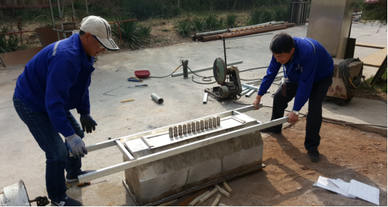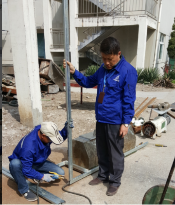 苏厂长与设备科人员进行半自动灌装机的焊接
