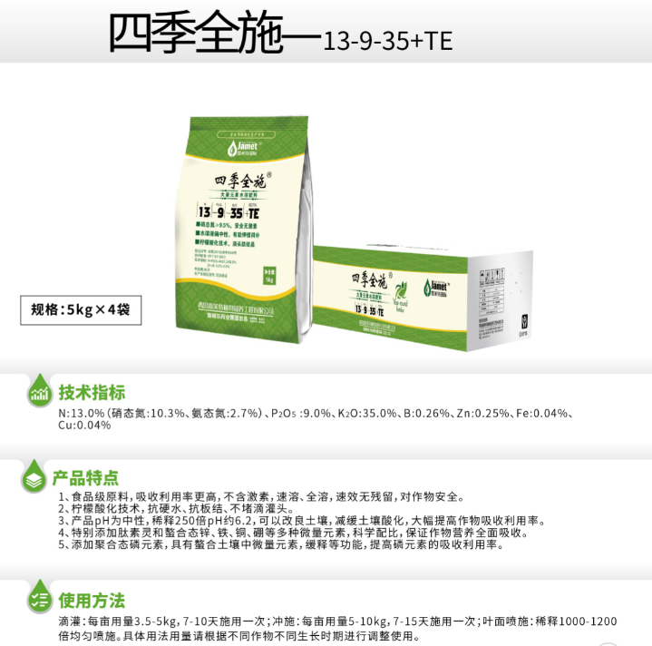 产品名称 四季全施—13-9-35+TE